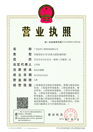 廣西永祥建設(shè)監(jiān)理有限公司是由王章權(quán)投資組建,于2013年2月16日在廣西百色市工商行政管理局登記注冊(cè)成立,原公司名稱“廣西永祥招標(biāo)咨詢有限公司”,于2020年6月18日申請(qǐng)變更企業(yè)名稱為“廣西永祥建設(shè)監(jiān)理有限公司”。注冊(cè)資金500萬元人民幣,本公司主要以政府采購(貨物與服務(wù))招標(biāo)代理、工程招標(biāo)代理、工程造價(jià)咨詢(開標(biāo)前財(cái)政評(píng)審預(yù)算、工程審計(jì)結(jié)算)、廣西工程監(jiān)理、工程咨詢(可行性研究報(bào)告)、物業(yè)管理等服務(wù)。